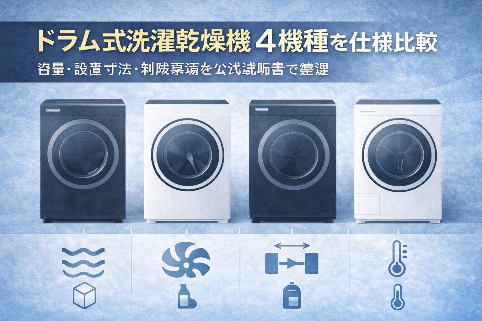 本記事では、国内主要メーカー4社のドラム式洗濯乾燥機について、「基本仕様」「動作条件」「制限・禁止事項」を軸に横並びで整理する。